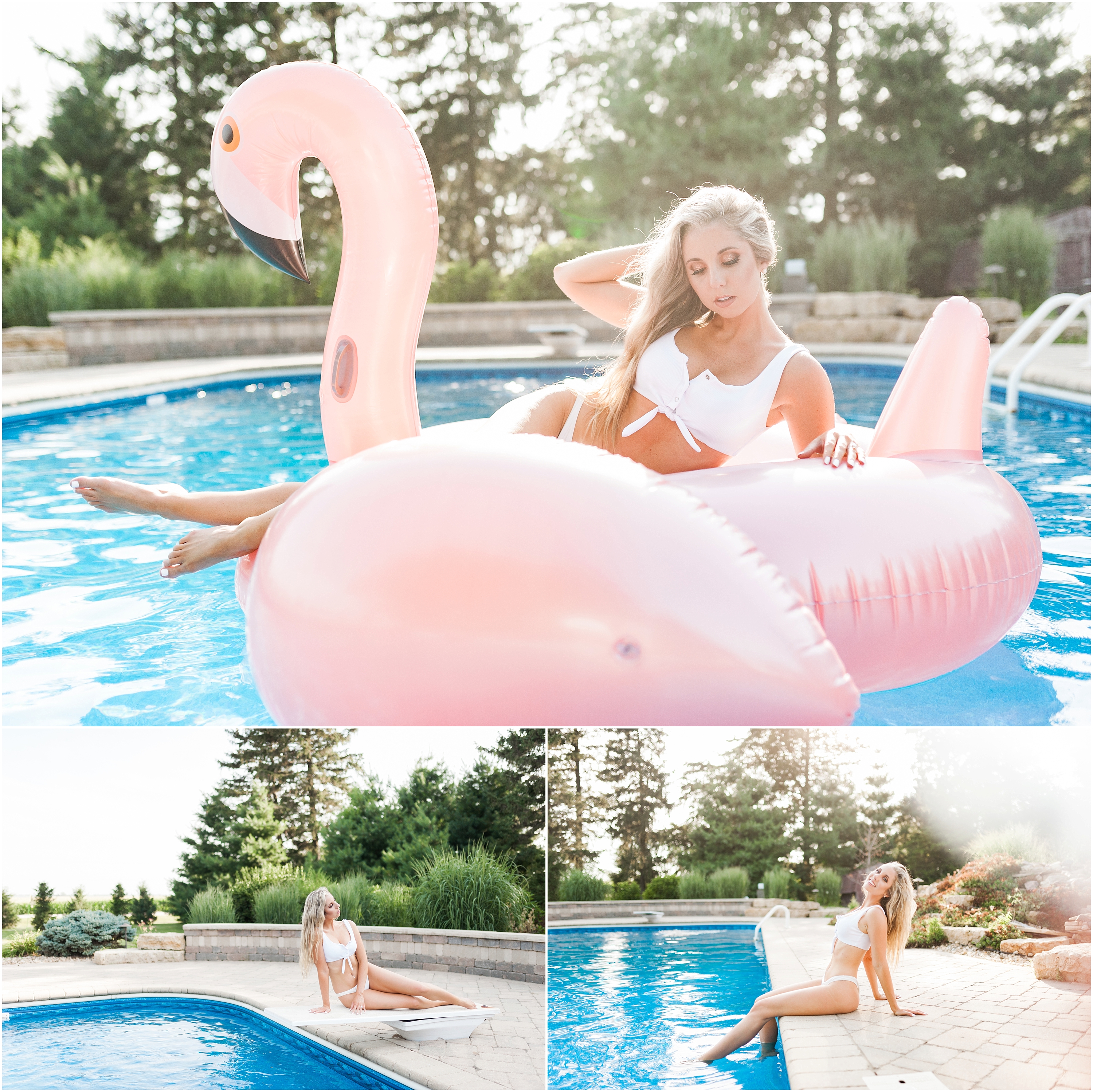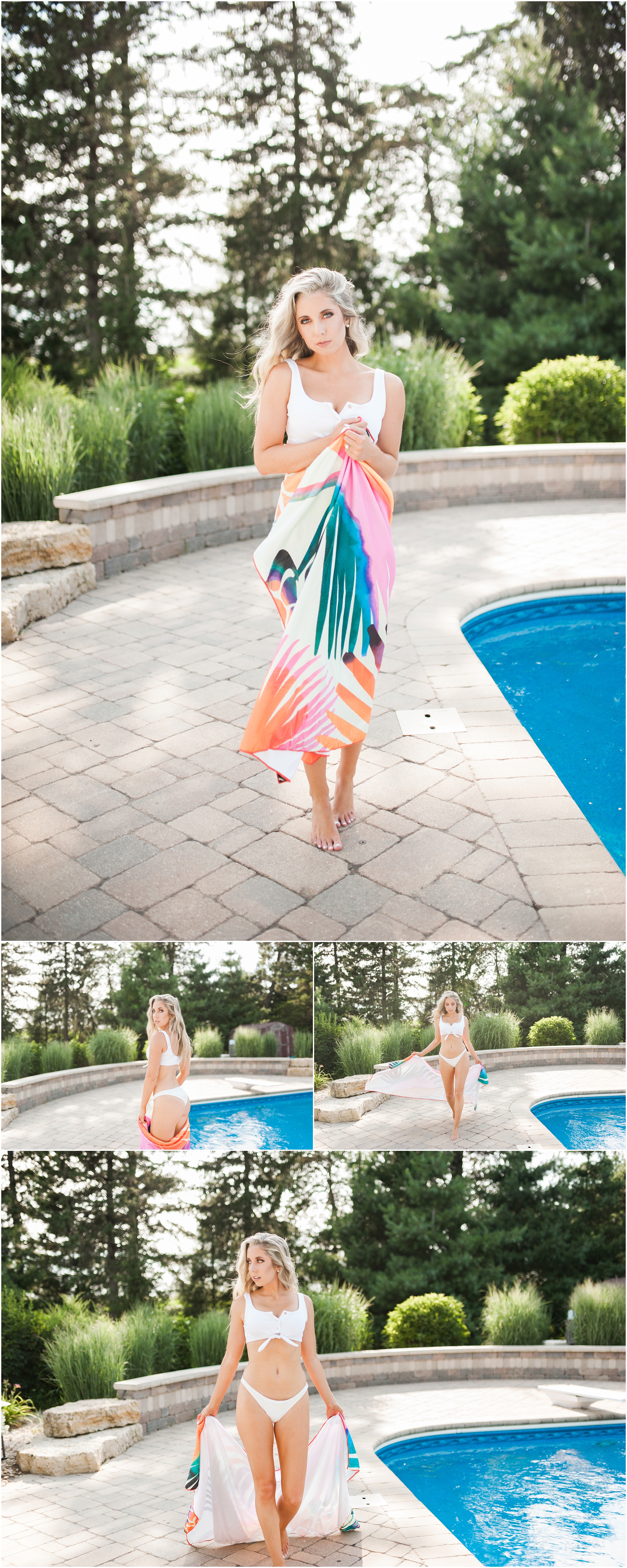 It was exciting to hear that Erin had a pool we could use for this session in the Quad Cities area- and even more exciting that it meant I got to work with her again! We have the best time during sessions. Backstory: I photographed Erin and her hubby’s engagement session, wedding, and for a few other amazing projects!