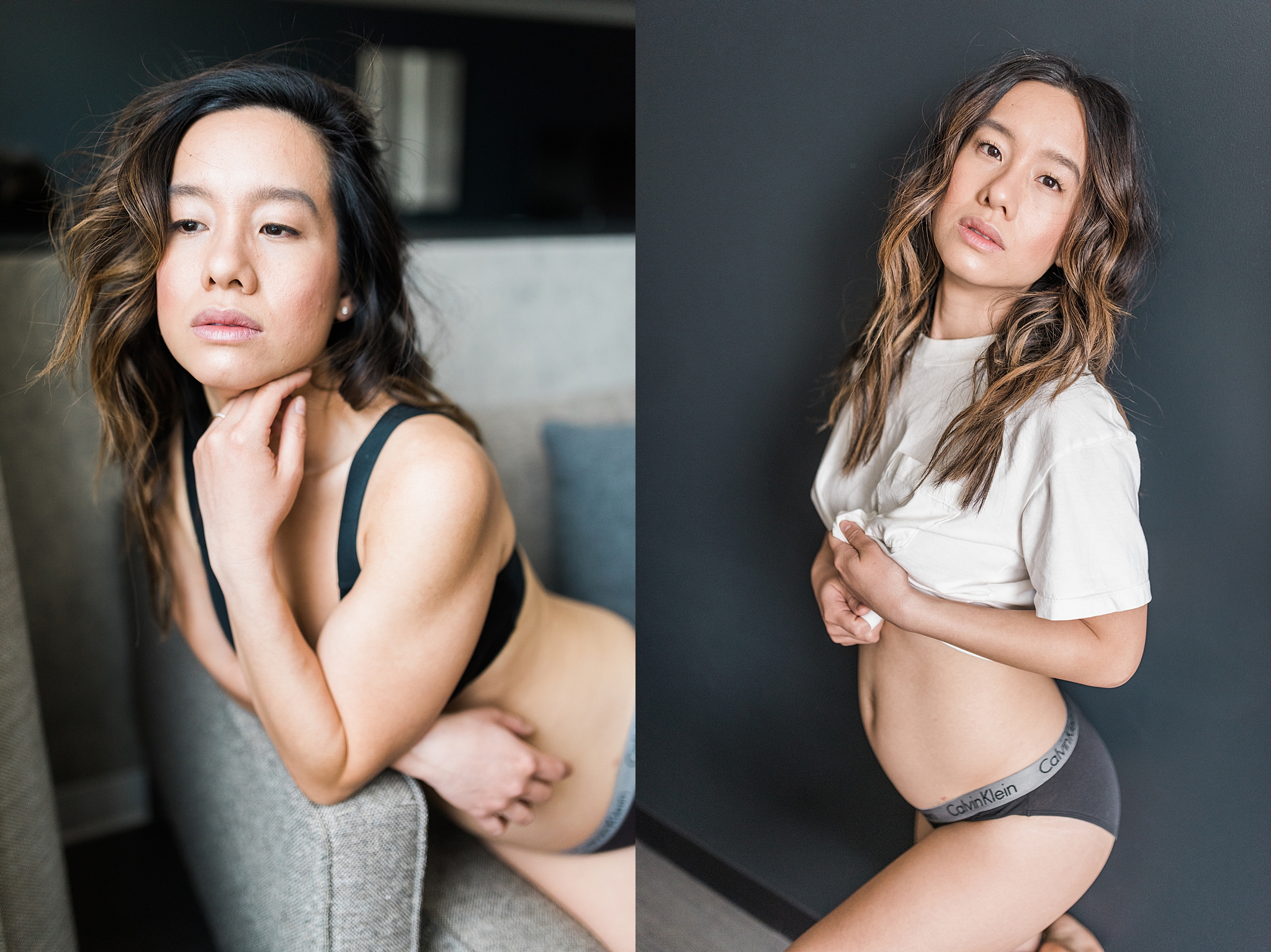 Kim is also a photographer (no pressure there) and had never done a boudoir session or modeled before! And the best part is that she has a little baby bump in the photos because she and her hubby are expecting a baby!!