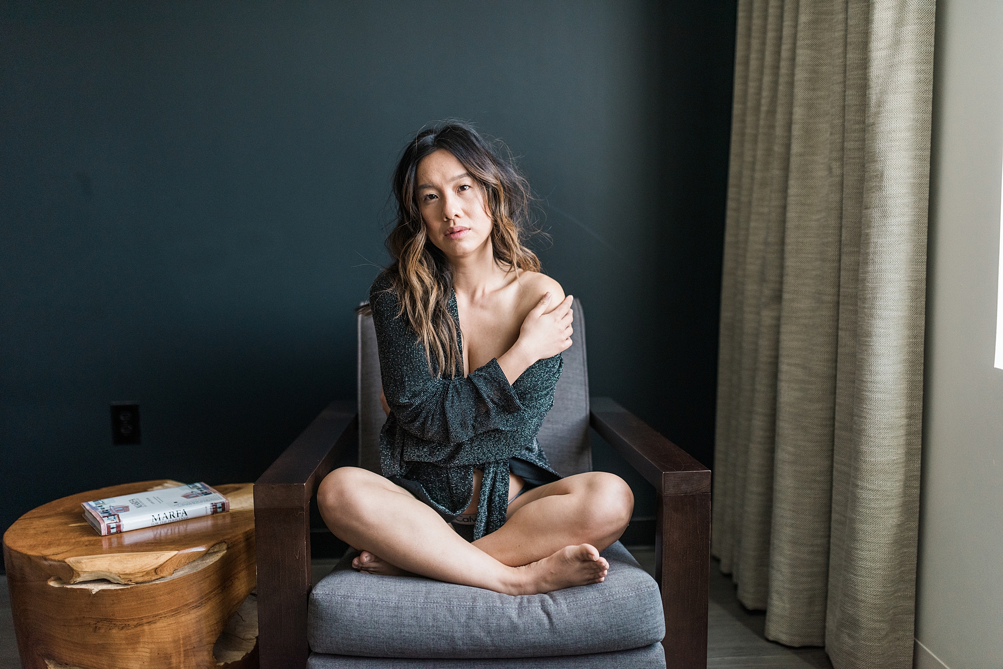 Ask my parents and they will tell you that I’ve been able to strike up conversations with strangers since I was very young. And lucky for me, Kim was one of these strangers! I attended a photography ‘retreat’ of sorts in Marfa, Texas in February, and while we chatted in a random group of people one of the first nights of the event, I started talking to Kim (of course I complimented her on how gorgeous she is) and she was totally up for ‘modeling’ for a boudoir session with me in my hotel room!!